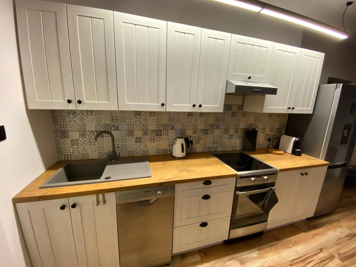 Oferta apartamentu obejmuje sypialnię (1), salon, kuchnię z pełnym wyposażeniem, w tym lodówką i ekspresem do kawy, a także łazienkę (1) z prysznicem oraz suszarką do włosów. W apartamencie zapewniono ręczniki i pościel.