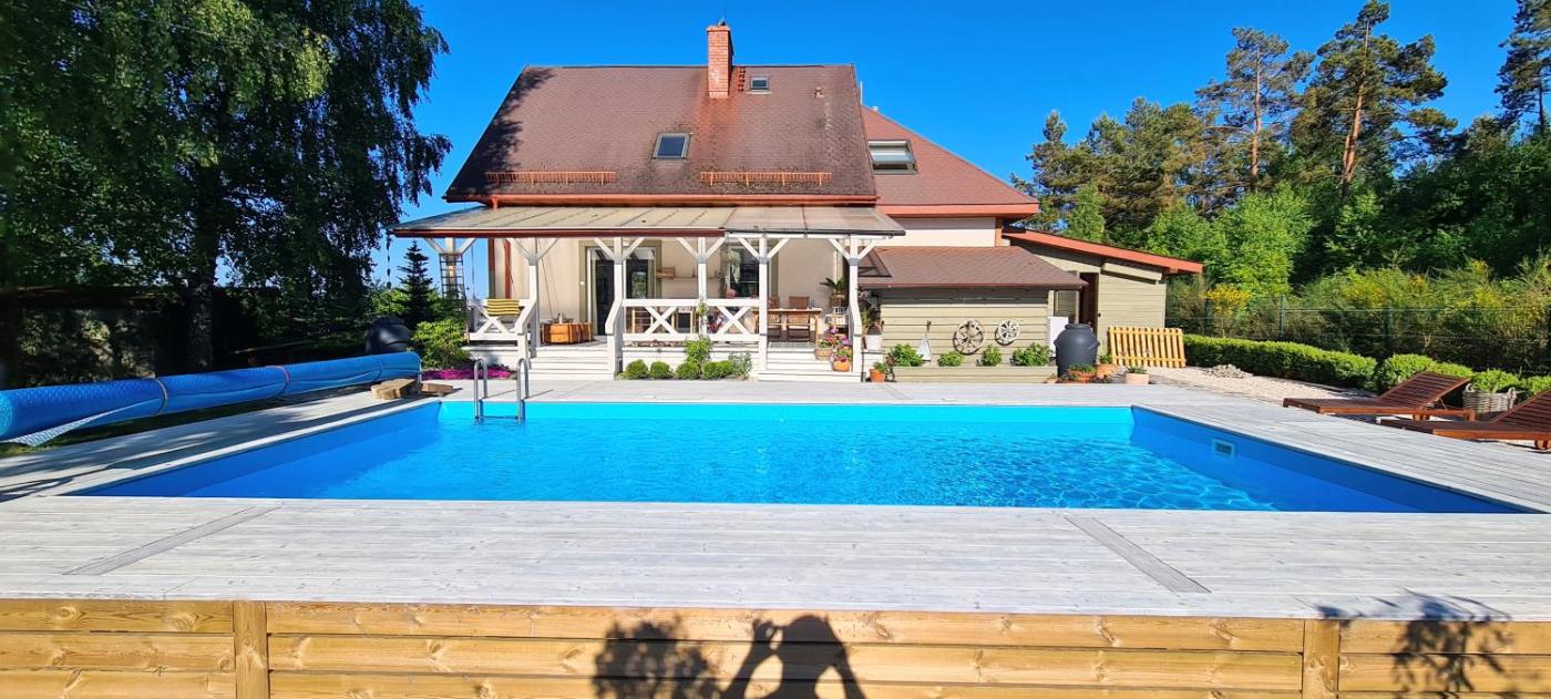 Dom z 4 sypialniami. This holiday home features a pool with a view and a fireplace. In the fully equipped kitchen, guests will find a stovetop, a refrigerator, a dishwasher and kitchenware. The spacious holiday home features a minibar, a tea and coffee maker, a terrace with garden views as well as a shared bathroom boasting a walk-in shower. The unit has 6 beds. Dom wakacyjny - 10 osobowy. Powierzchnia pokoju ok.: 120 mkw.