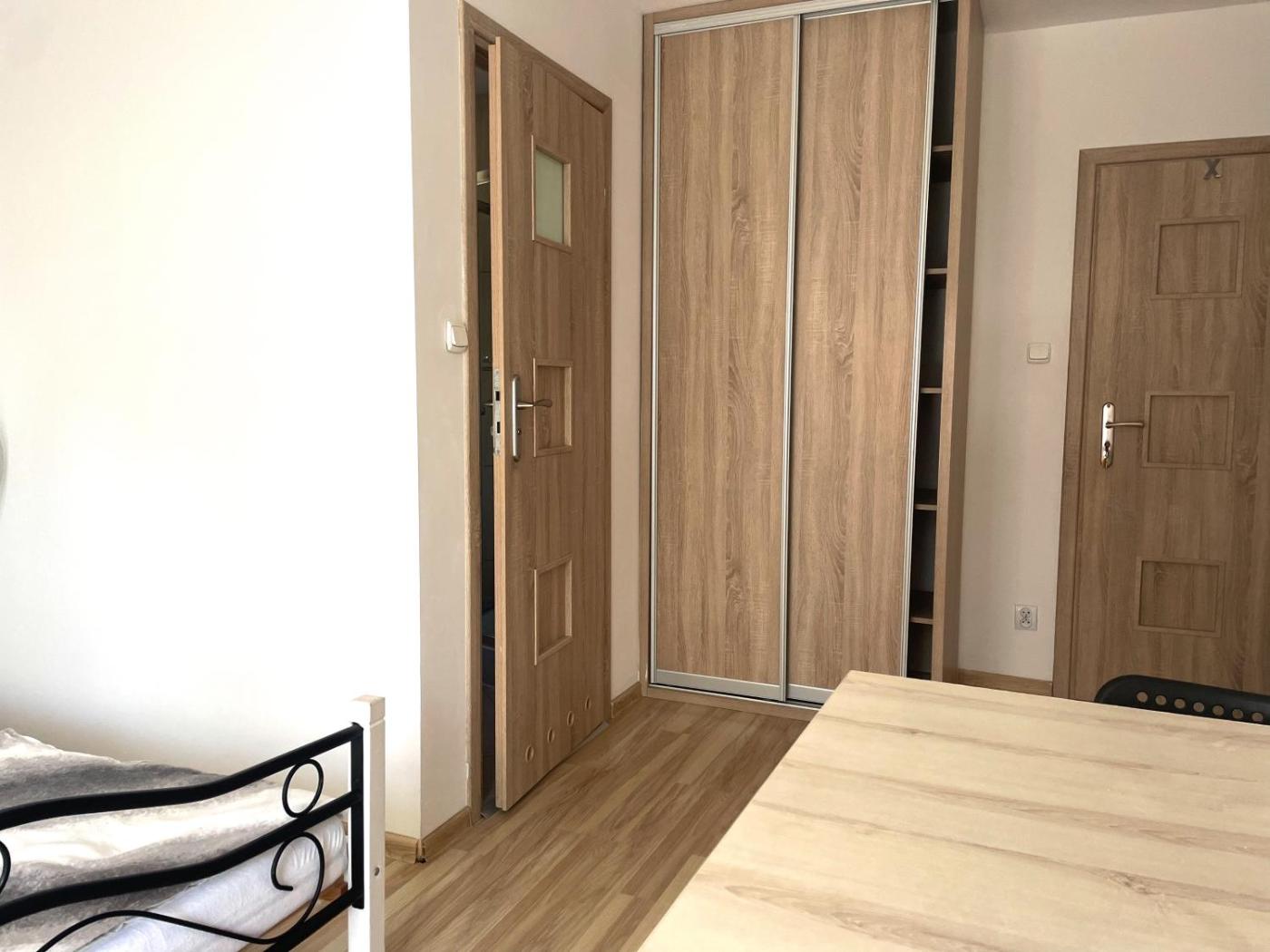 Studio. The kitchenette is fitted with a refrigerator, kitchenware and an electric kettle. This studio is comprised of a flat-screen TV with cable channels, a private bathroom as well as a balcony. The unit has 3 beds. Studio - 5 osobowy. Powierzchnia pokoju ok.: 40 mkw.