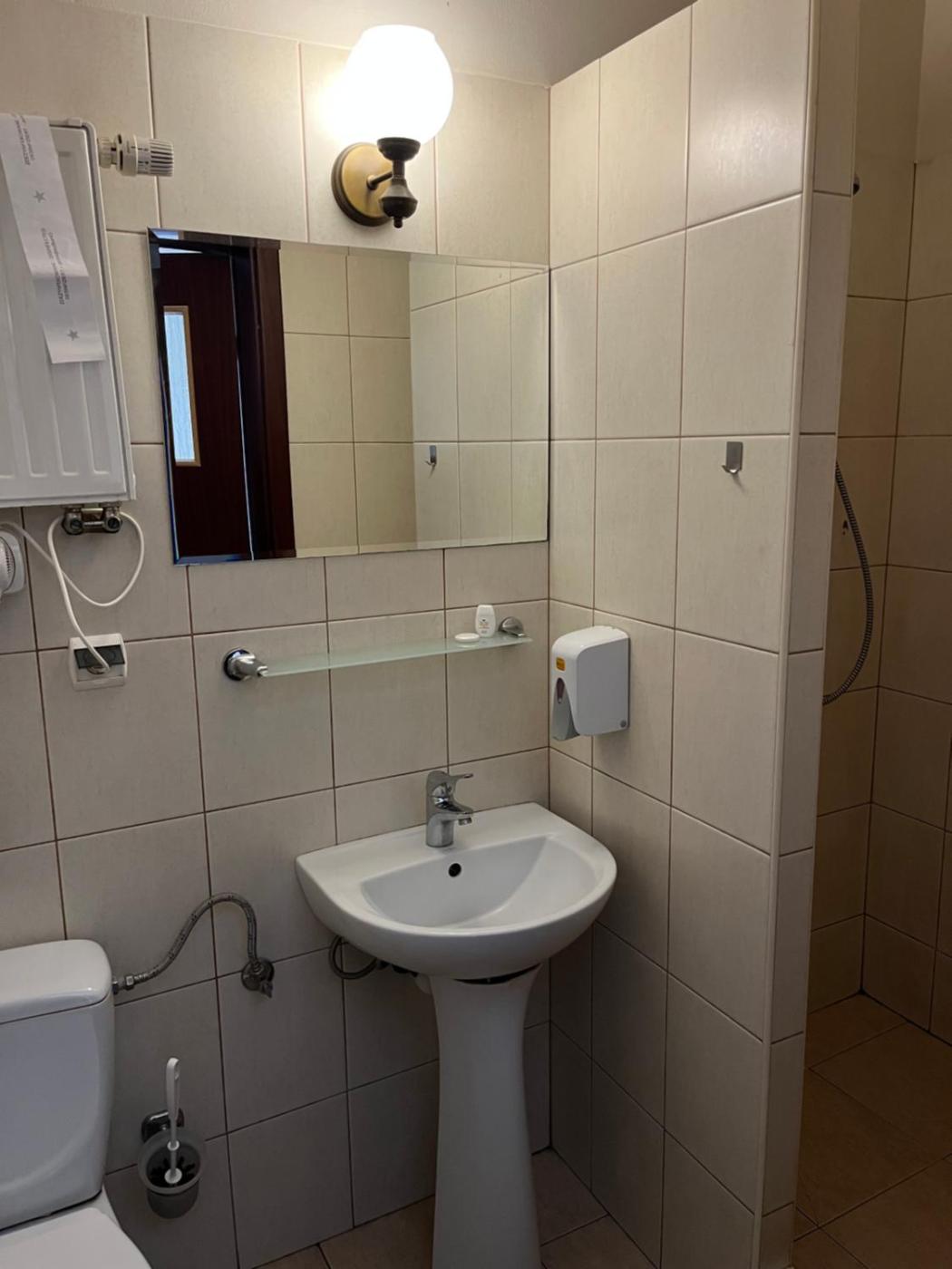 Pokój jednoosobowy. The single room features a wardrobe and an electric kettle, as well as a private bathroom boasting a shower. This single room offers heating and a flat-screen TV. The unit has 1 bed. Pokój Jednoosobowy - 1 osobowy.