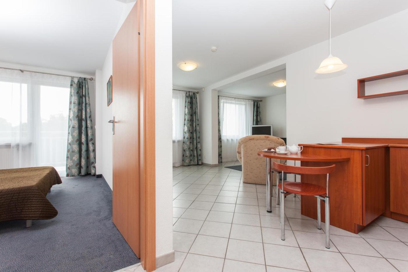 Apartament z 1 sypialnią. Apartament ten mieści sypialnię, część wypoczynkową z sofą oraz łazienkę z prysznicem. Udogodnienia obejmują dobrze wyposażoną kuchnię z płytą kuchenną, lodówką, czajnikiem elektrycznym i przyborami kuchennymi. Apartament oferuje także balkon z widokiem na miasto, jadalnię oraz telewizor z płaskim ekranem i dostępem do kanałów kablowych. Do dyspozycji Gości są 2 łóżka. Apartament - 4 osobowy. Powierzchnia pokoju ok.: 32 mkw. ;