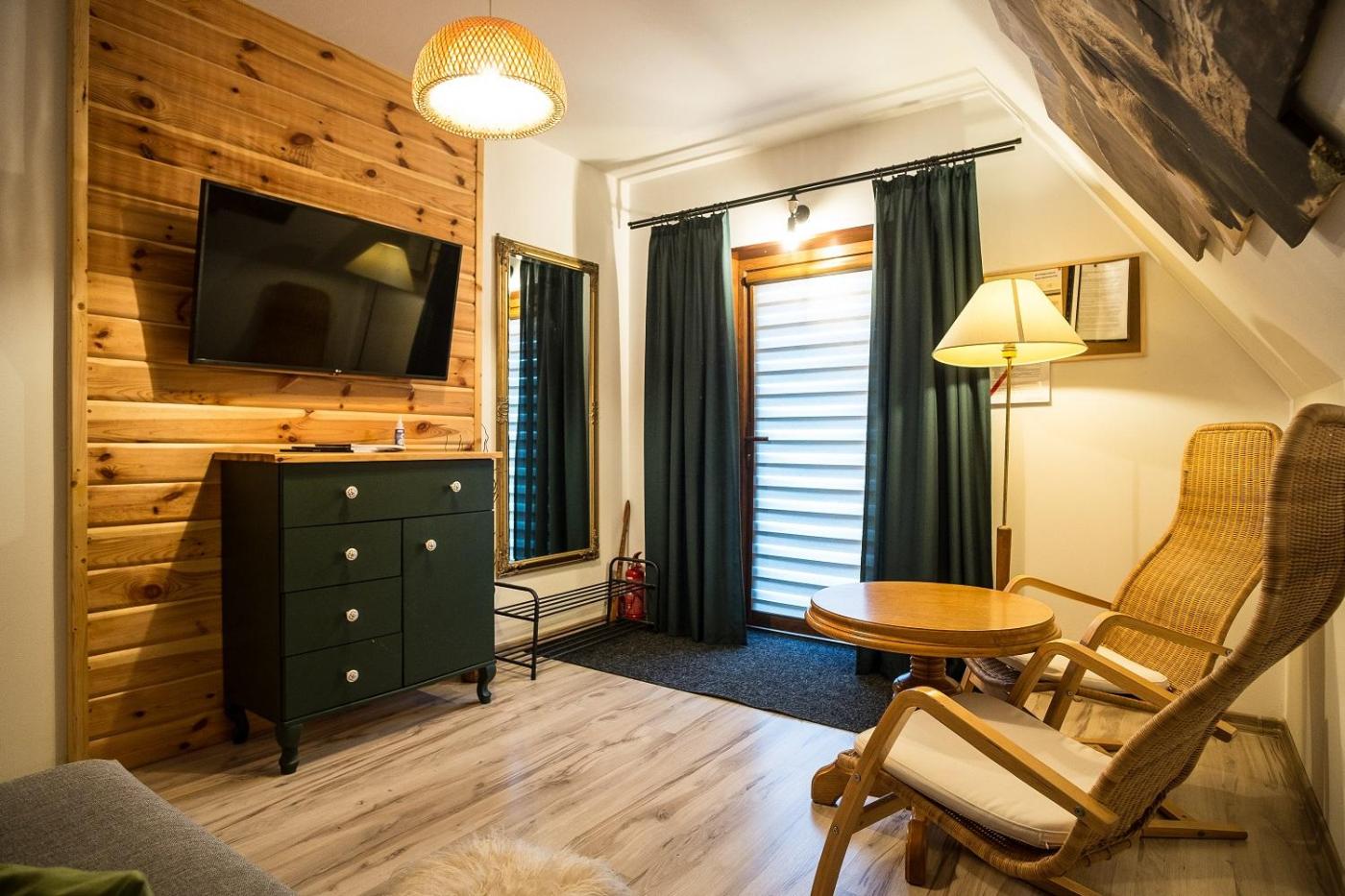 Apartament dwupoziomowy. Featuring a private entrance, this apartment consists of 1 living room, 2 separate bedrooms and 1 bathroom with a shower and a hairdryer. Guests will find a stovetop, a refrigerator, kitchenware and a microwave in the fully equipped kitchen. The apartment also offers a barbecue. Boasting a balcony with mountain views, this apartment also provides a tea and coffee maker and a flat-screen TV with satellite channels. The unit offers 5 beds. Apartament - 7 osobowy. Powierzchnia pokoju ok.: 55 mkw. ;