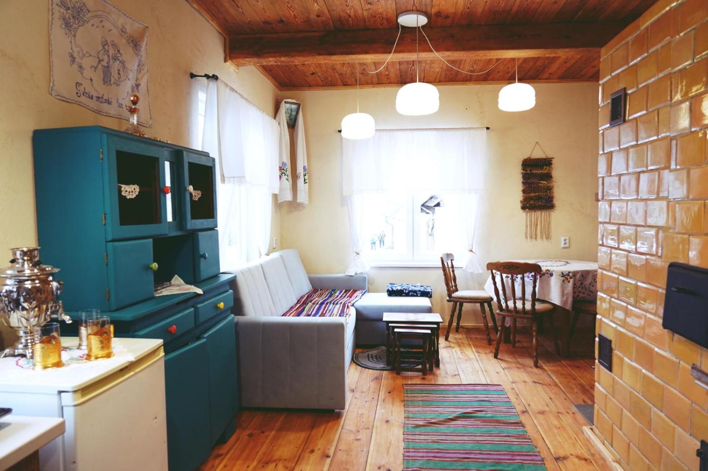 Dom z 2 sypialniami. This holiday home features a sauna and a fireplace. Guests will find a stovetop, a refrigerator, kitchenware and a tea and coffee maker in the well-equipped kitchenette. The holiday home also comes with a barbecue. The holiday home features a seating area, a wardrobe, a sofa as well as a terrace with garden views. The unit has 4 beds. Dom wakacyjny - 6 osobowy. Powierzchnia pokoju ok.: 50 mkw.