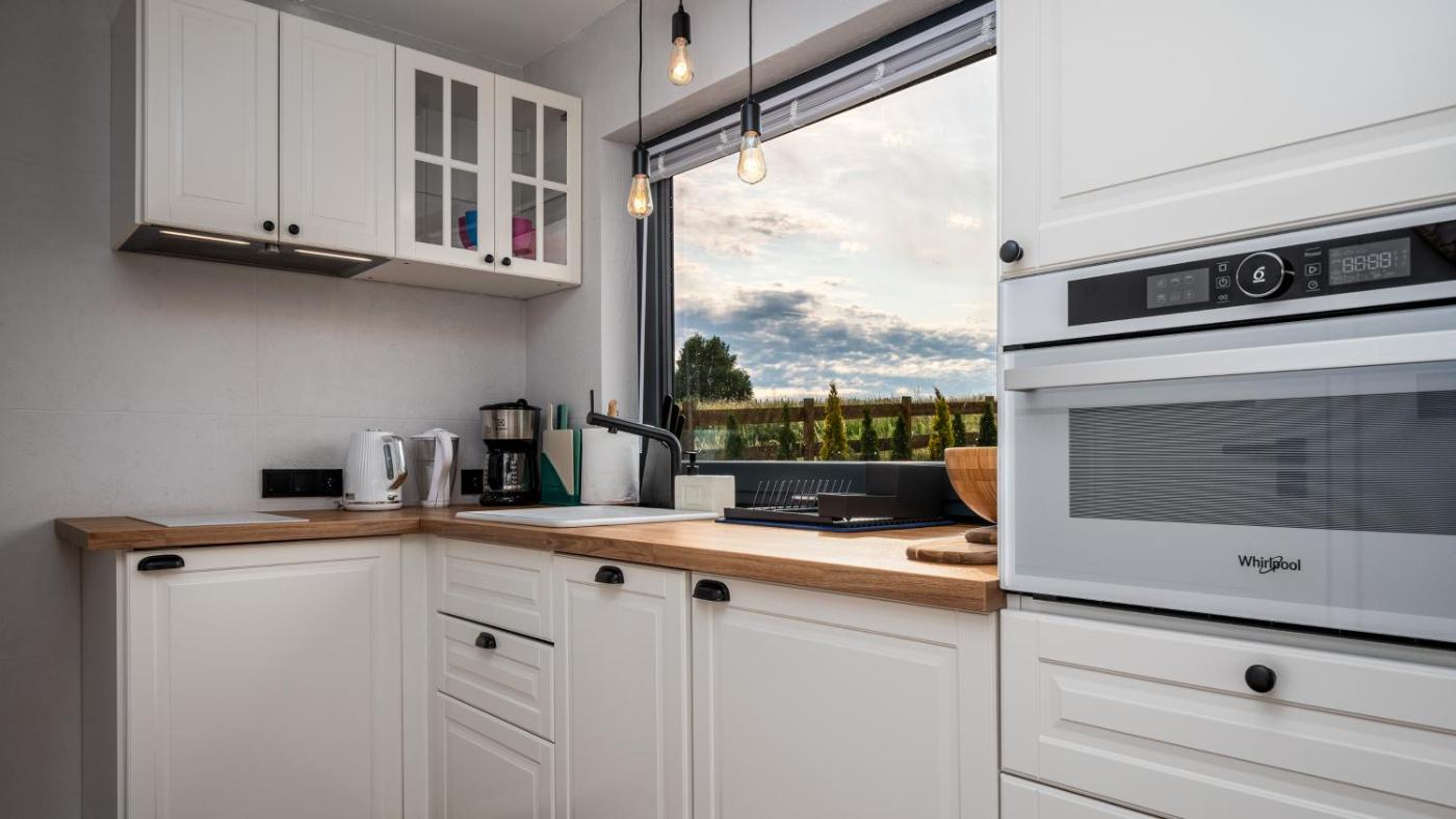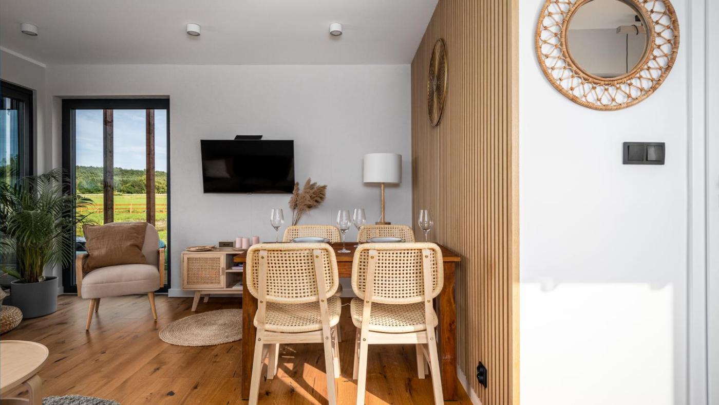 Dom z 2 sypialniami. This air-conditioned holiday home is comprised of 1 living room, 2 separate bedrooms and 1 bathroom with a shower. The well-fitted kitchenette features a stovetop, a refrigerator, a dishwasher and kitchenware. Featuring a terrace with lake views, this holiday home also offers a seating area and a flat-screen TV with streaming services. The unit offers 3 beds. Dom wakacyjny - 6 osobowy. Powierzchnia pokoju ok.: 65 mkw.